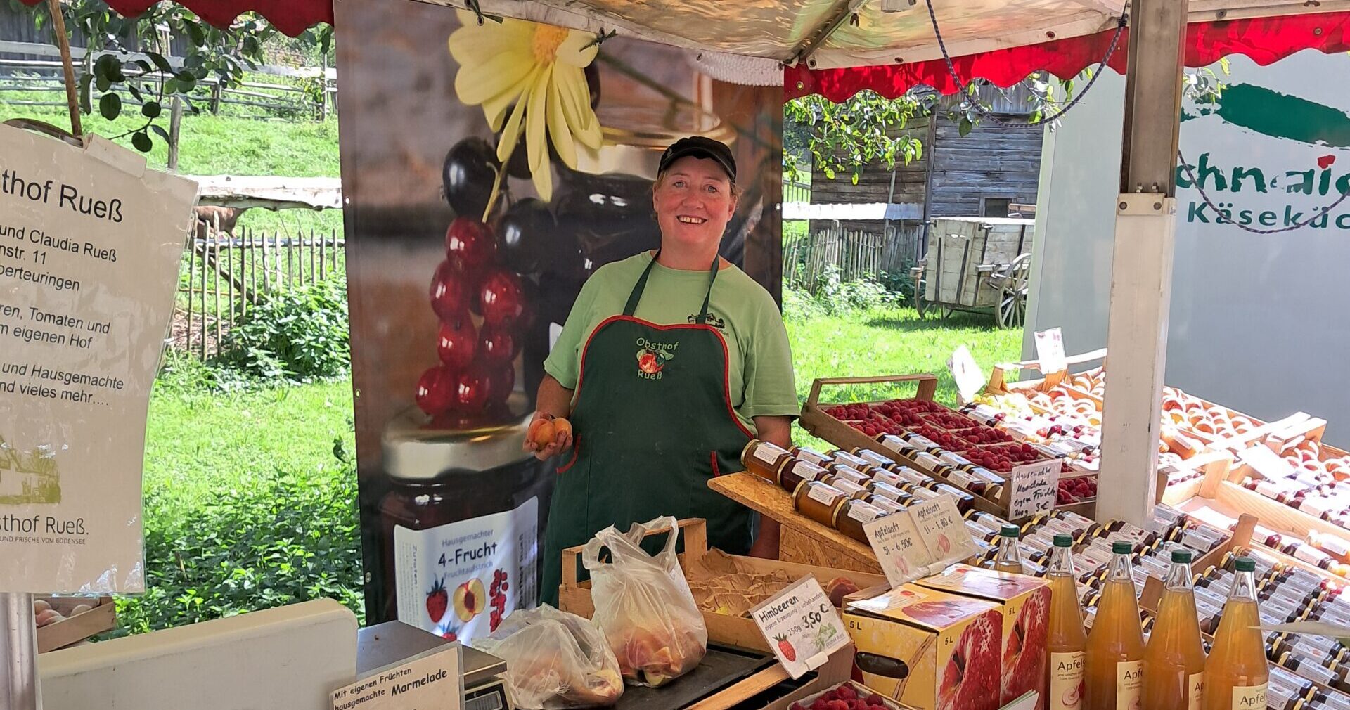 Wir verkaufen unsere Produkte auf Wochenmarken, auf Bestellung ab Hof und an einem Marktstand in Wasserburg am Bodensee und auf Spezialmärkten zum Beispiel im Bauernhaus Museum Wolfegg.