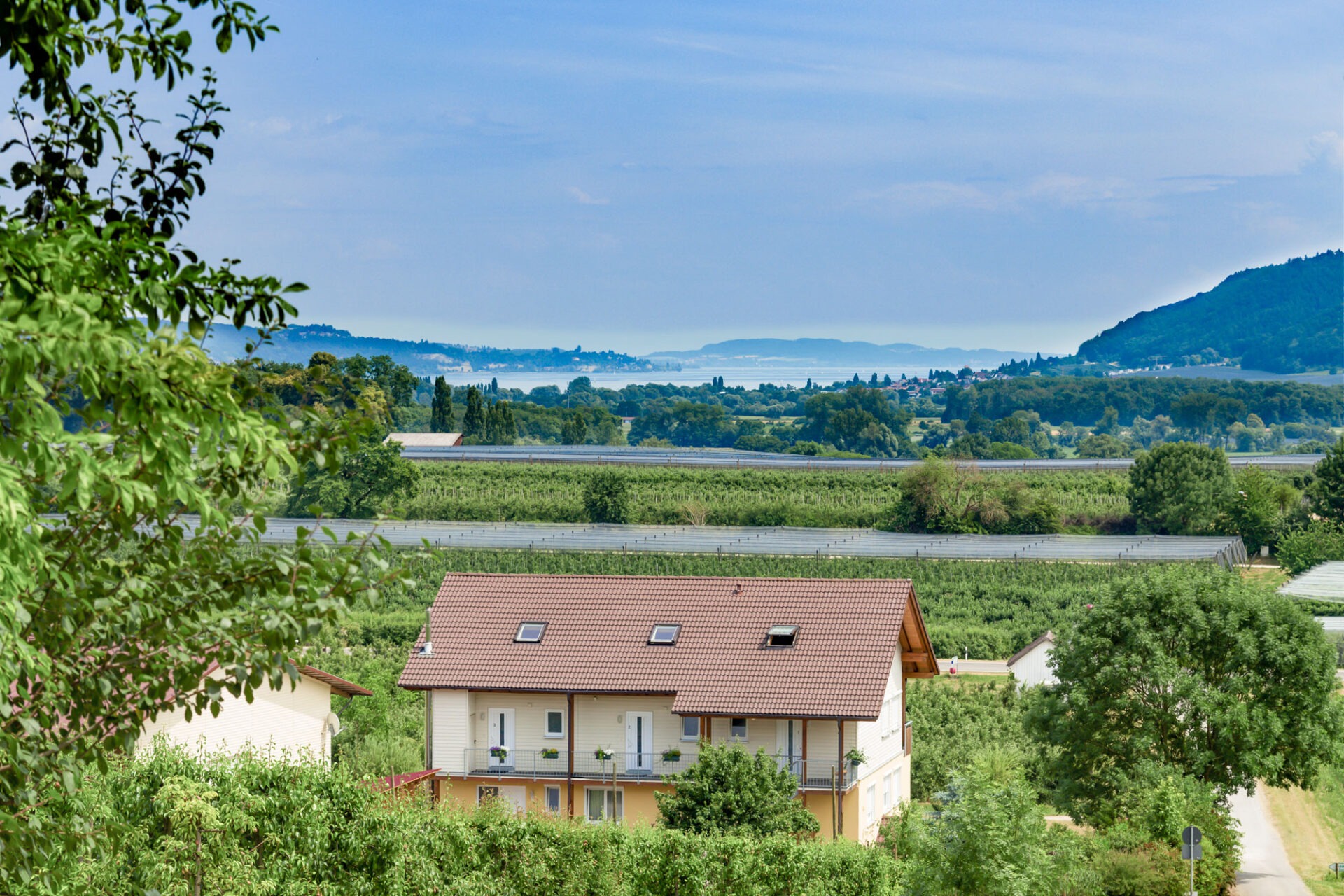 Wir liegen zwischen Apfel, Kirschen und Himbeeranlagen, die wir als Obstbaubetrieb selbst bewirtschaften.